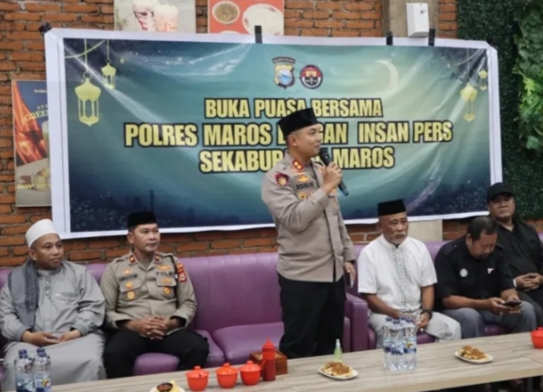 KARYANEWS.id, Maros – Polres Maros menggelar kegiatan buka puasa bersama insan pers sebagai bagian dari upaya mempererat kemitraan antara kepolisian dan media. Acara tersebut berlangsung di Warkop Az-Zahra Batangase pada Rabu (25/2/2026).